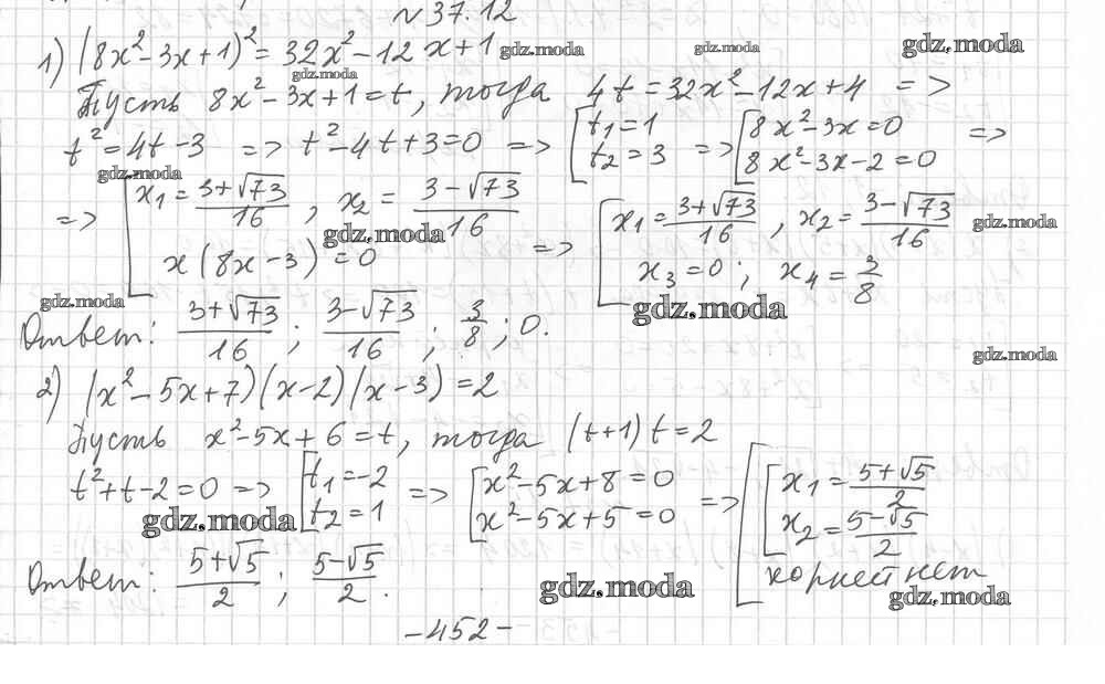 ОТВЕТ на задание № 12 Учебник по Алгебре 8 класс Мерзляк Алгоритм успеха Углубленный уровень