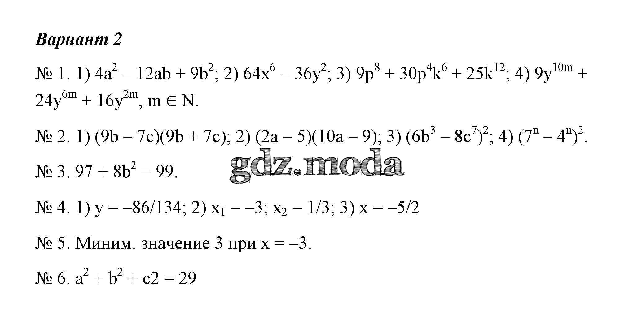 ГДЗ решение к заданию № 2 Алгебра 8 класс самостоятельные и контрольные работы Мерзляк (Углубленный уровень) Вентана-граф 2017 Углубленный уровень ФГОС бесплатно на гдз.мода!