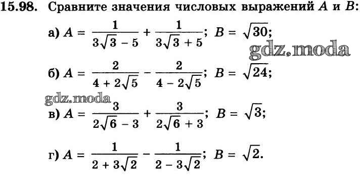 ГДЗ решение к заданию № 98 Алгебра 8 класс задачник Базовый уровень Мордкович А.Г. Мнемозина 2015 Часть 2 Базовый уровень ФГОС бесплатно на гдз.мода!