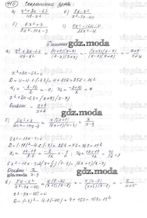 ГДЗ решение к заданию № 110 Алгебра 8 класс задачник Углубленный уровень Мордкович А.Г. Мнемозина 2016 Часть 1, Часть 2 Углубленный уровень ФГОС бесплатно на гдз.мода!
