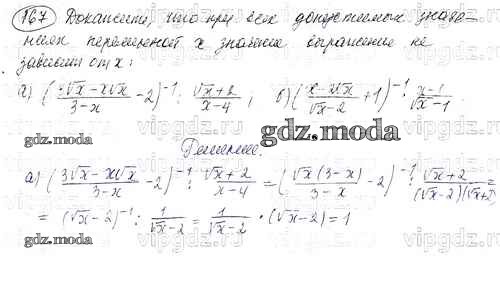 ГДЗ решение к заданию № 167 Алгебра 8 класс задачник Углубленный уровень Мордкович А.Г. Мнемозина 2016 Часть 1, Часть 2 Углубленный уровень ФГОС бесплатно на гдз.мода!