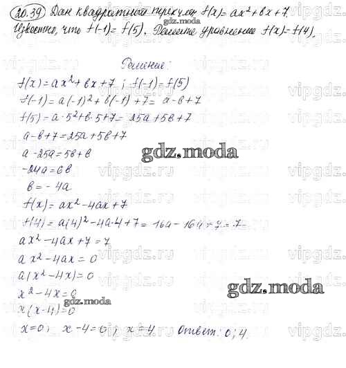 ГДЗ решение к заданию № 39 Алгебра 8 класс задачник Углубленный уровень Мордкович А.Г. Мнемозина 2016 Часть 1, Часть 2 Углубленный уровень ФГОС бесплатно на гдз.мода!