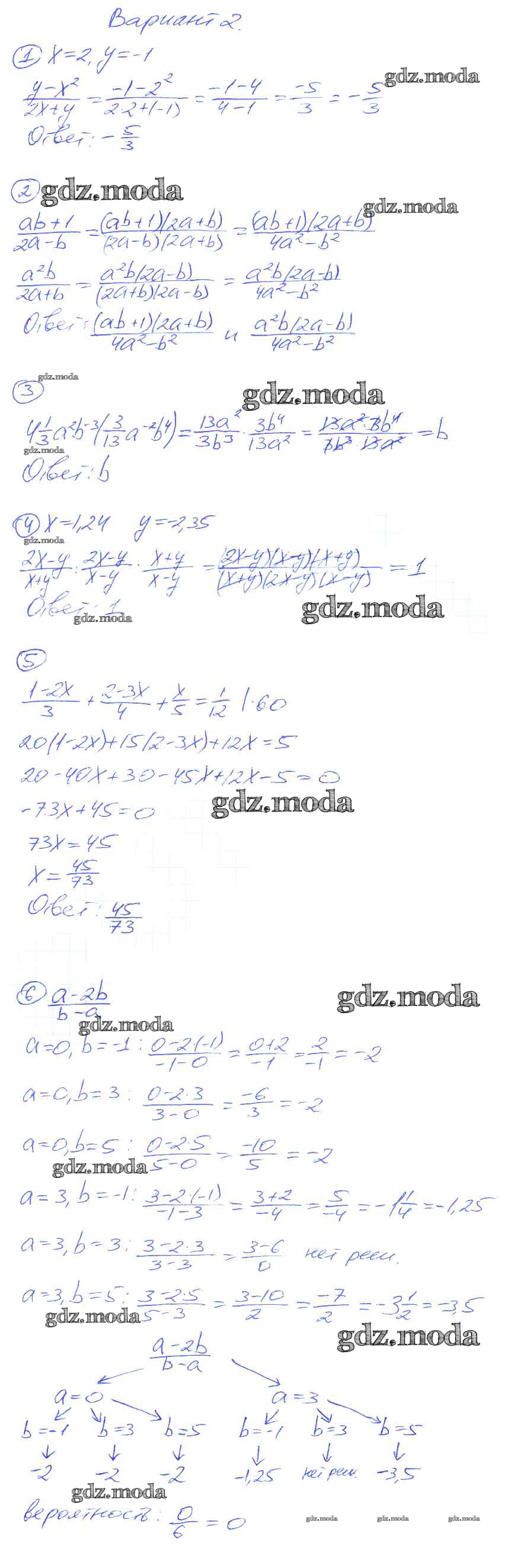 ОТВЕТ на задание № вариант-2 Дидактические материалы по Алгебре 8 класс Попов УМК