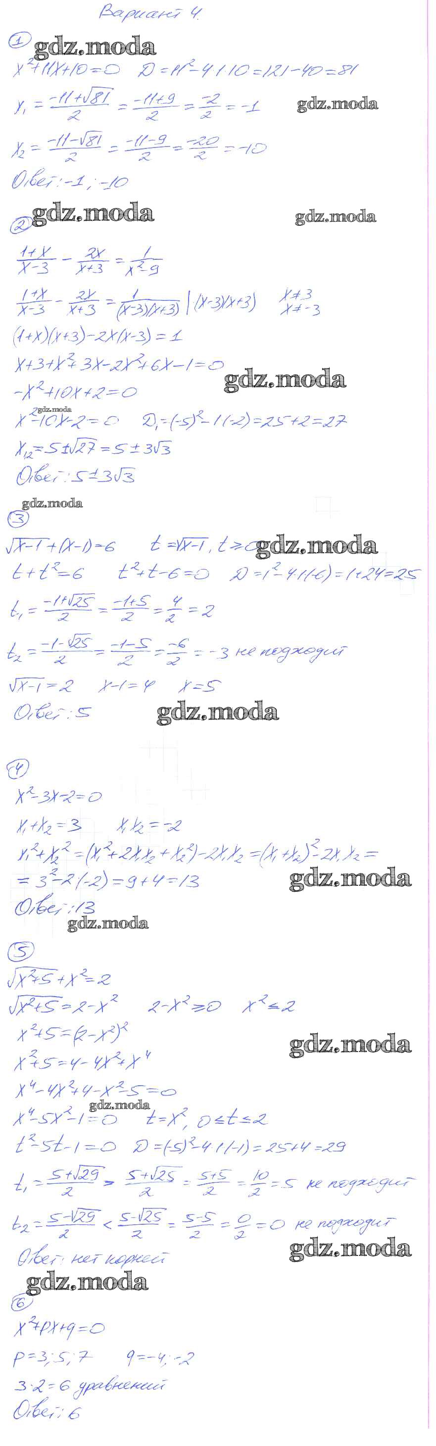 ОТВЕТ на задание № вариант-4 Дидактические материалы по Алгебре 8 класс Попов УМК
