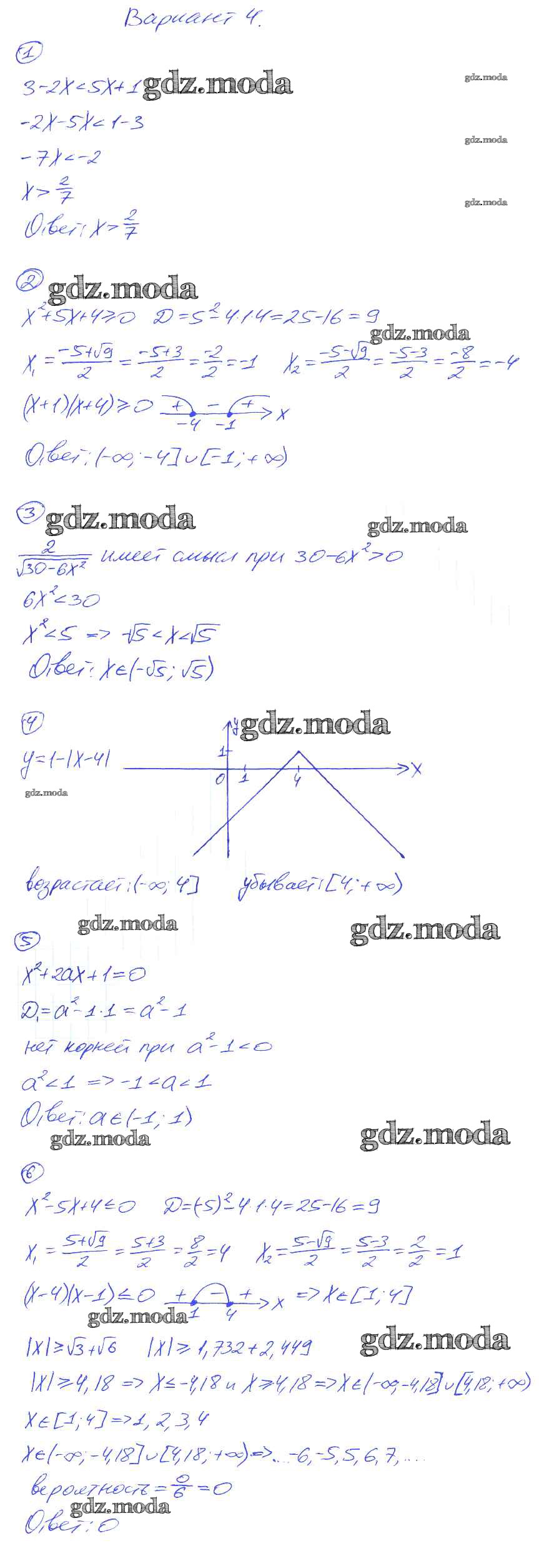 ГДЗ решение к заданию № вариант-4 Алгебра 8 класс Дидактические материалы Попов М.А. (к уч. Мордковича) Экзамен 2014 ФГОС бесплатно на гдз.мода!