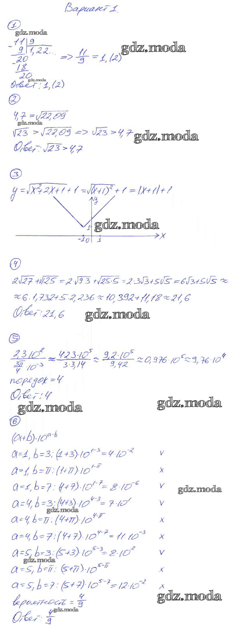 ГДЗ решение к заданию № вариант-1 Алгебра 8 класс Дидактические материалы Попов М.А. (к уч. Мордковича) Экзамен 2014 ФГОС бесплатно на гдз.мода!