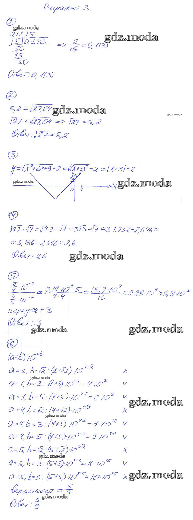 ГДЗ решение к заданию № вариант-3 Алгебра 8 класс Дидактические материалы Попов М.А. (к уч. Мордковича) Экзамен 2014 ФГОС бесплатно на гдз.мода!