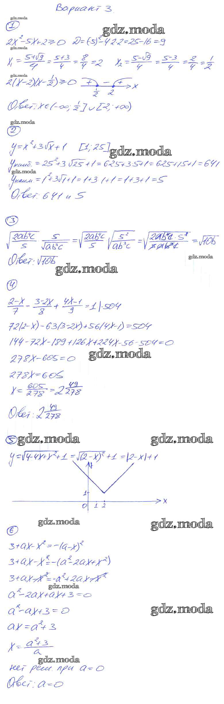 ГДЗ решение к заданию № вариант-3 Алгебра 8 класс Дидактические материалы Попов М.А. (к уч. Мордковича) Экзамен 2014 ФГОС бесплатно на гдз.мода!