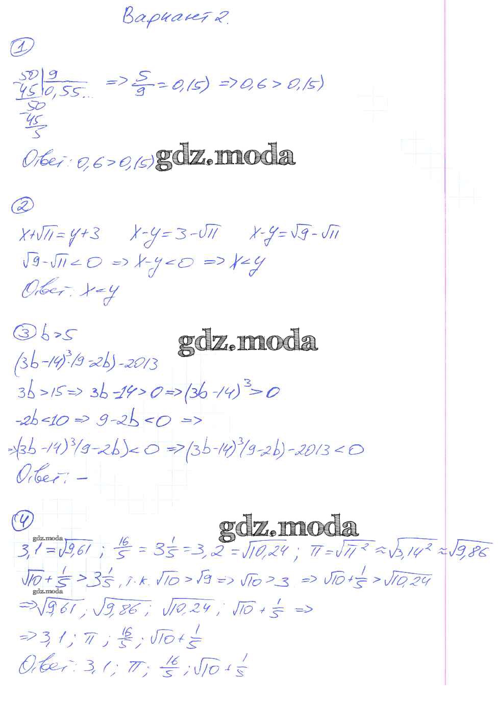 ОТВЕТ на задание № вариант-2 Дидактические материалы по Алгебре 8 класс Попов УМК