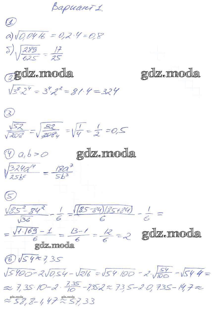 ОТВЕТ на задание № вариант-1 Дидактические материалы по Алгебре 8 класс Попов УМК