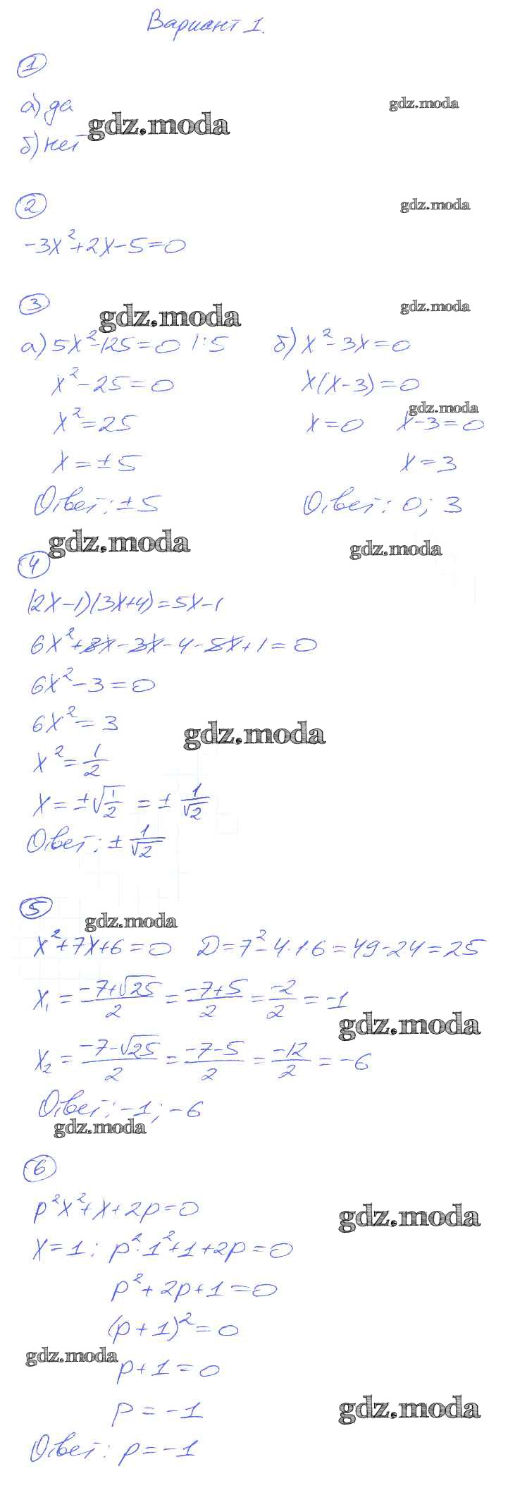 ОТВЕТ на задание № вариант-1 Дидактические материалы по Алгебре 8 класс Попов УМК