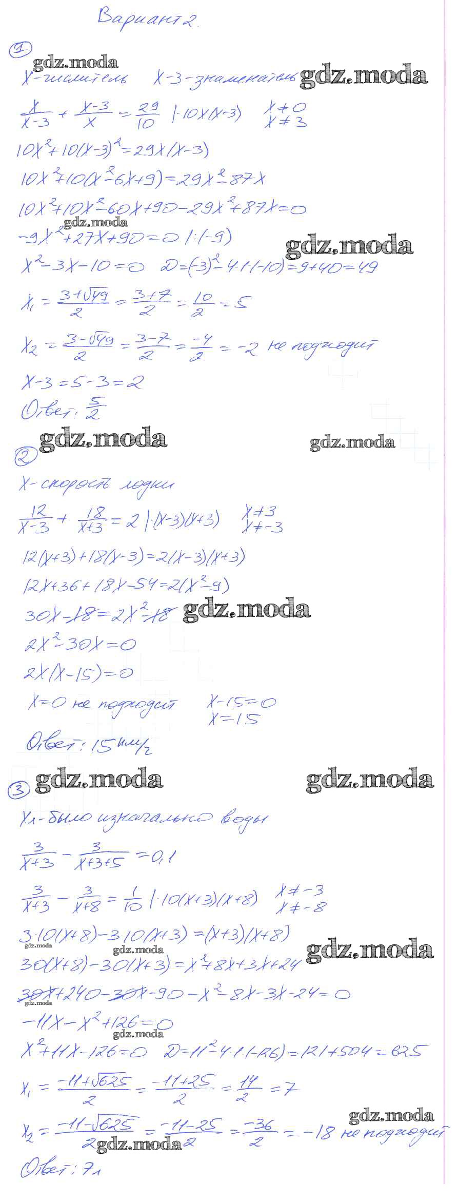 ОТВЕТ на задание № вариант-2 Дидактические материалы по Алгебре 8 класс Попов УМК