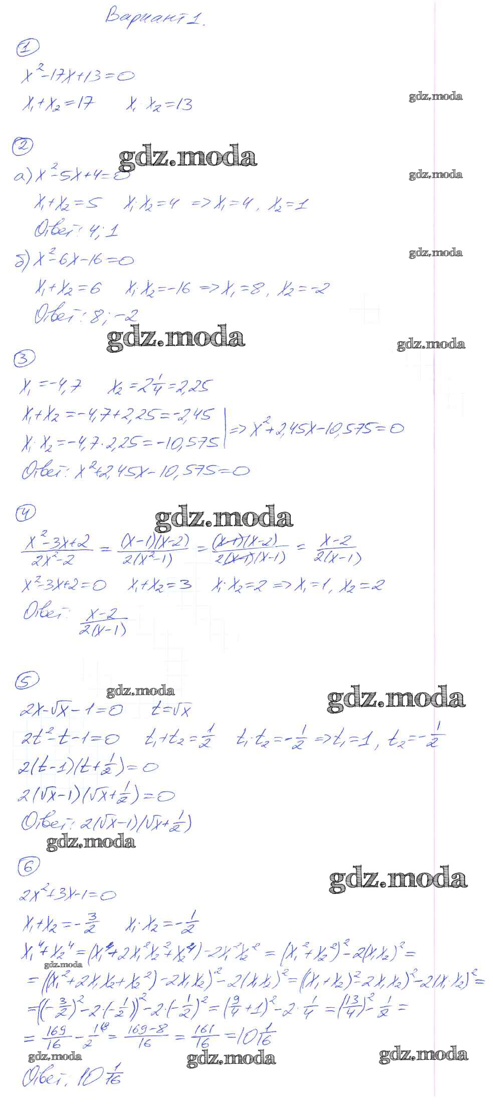 ОТВЕТ на задание № вариант-1 Дидактические материалы по Алгебре 8 класс Попов УМК