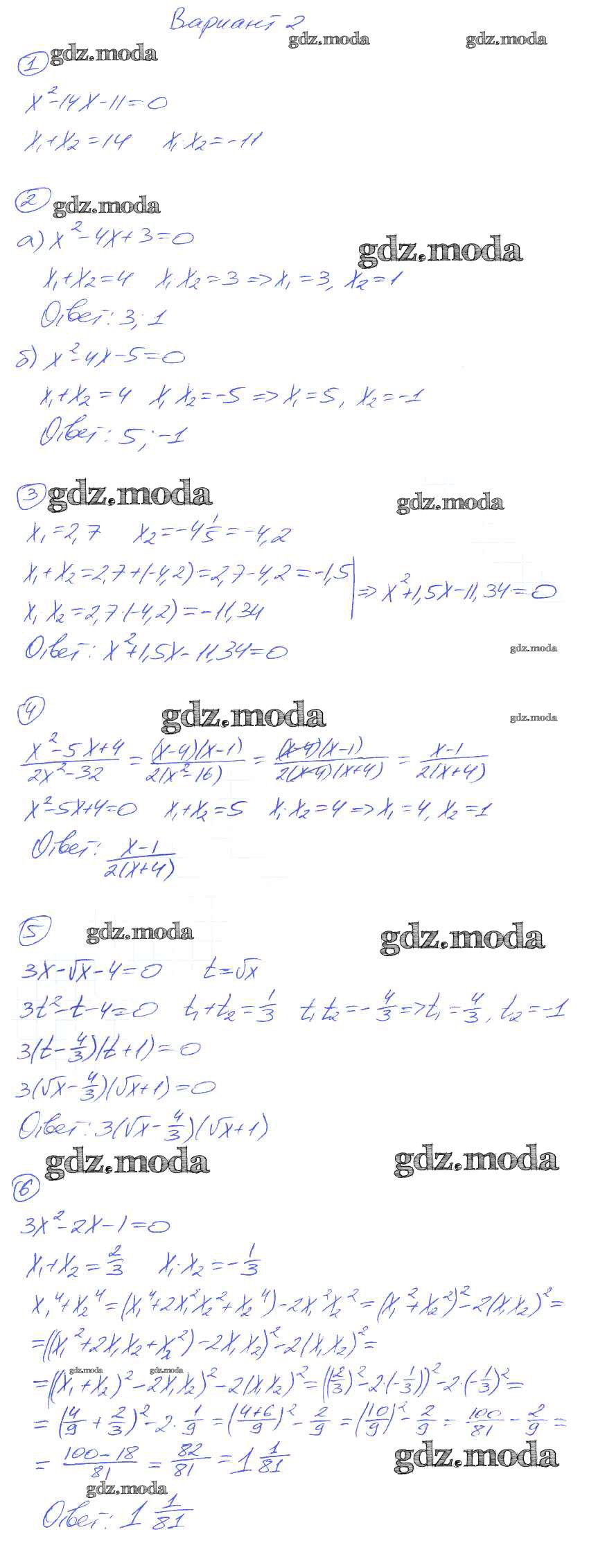 ГДЗ решение к заданию № вариант-2 Алгебра 8 класс Дидактические материалы Попов М.А. (к уч. Мордковича) Экзамен 2014 ФГОС бесплатно на гдз.мода!
