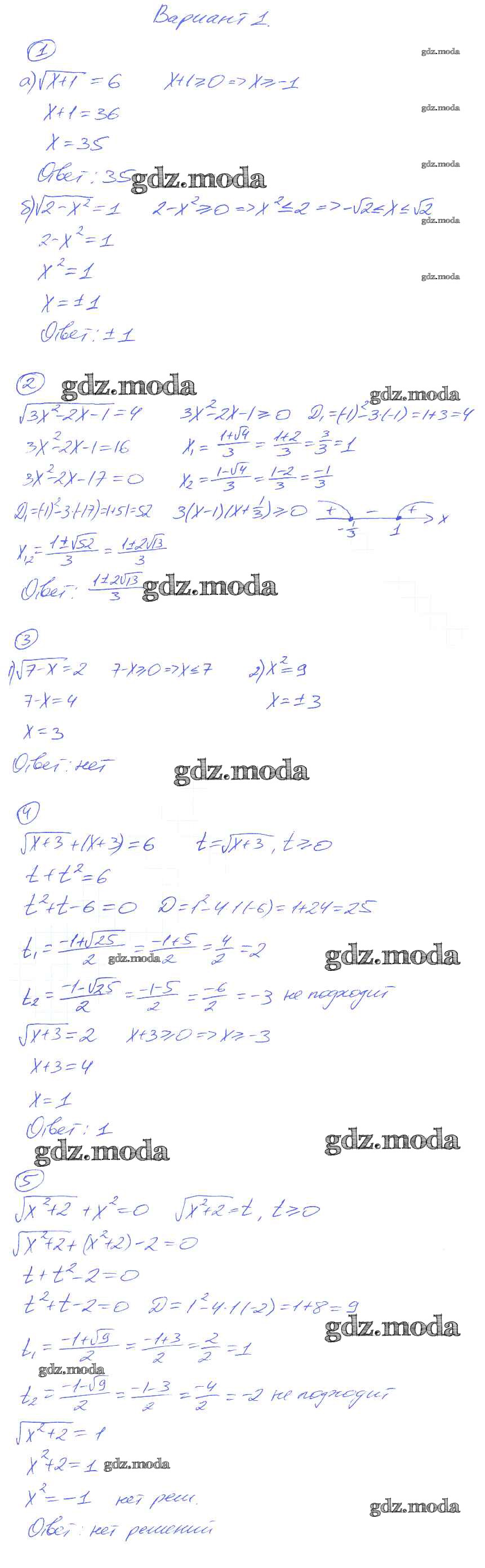 ОТВЕТ на задание № вариант-1 Дидактические материалы по Алгебре 8 класс Попов УМК