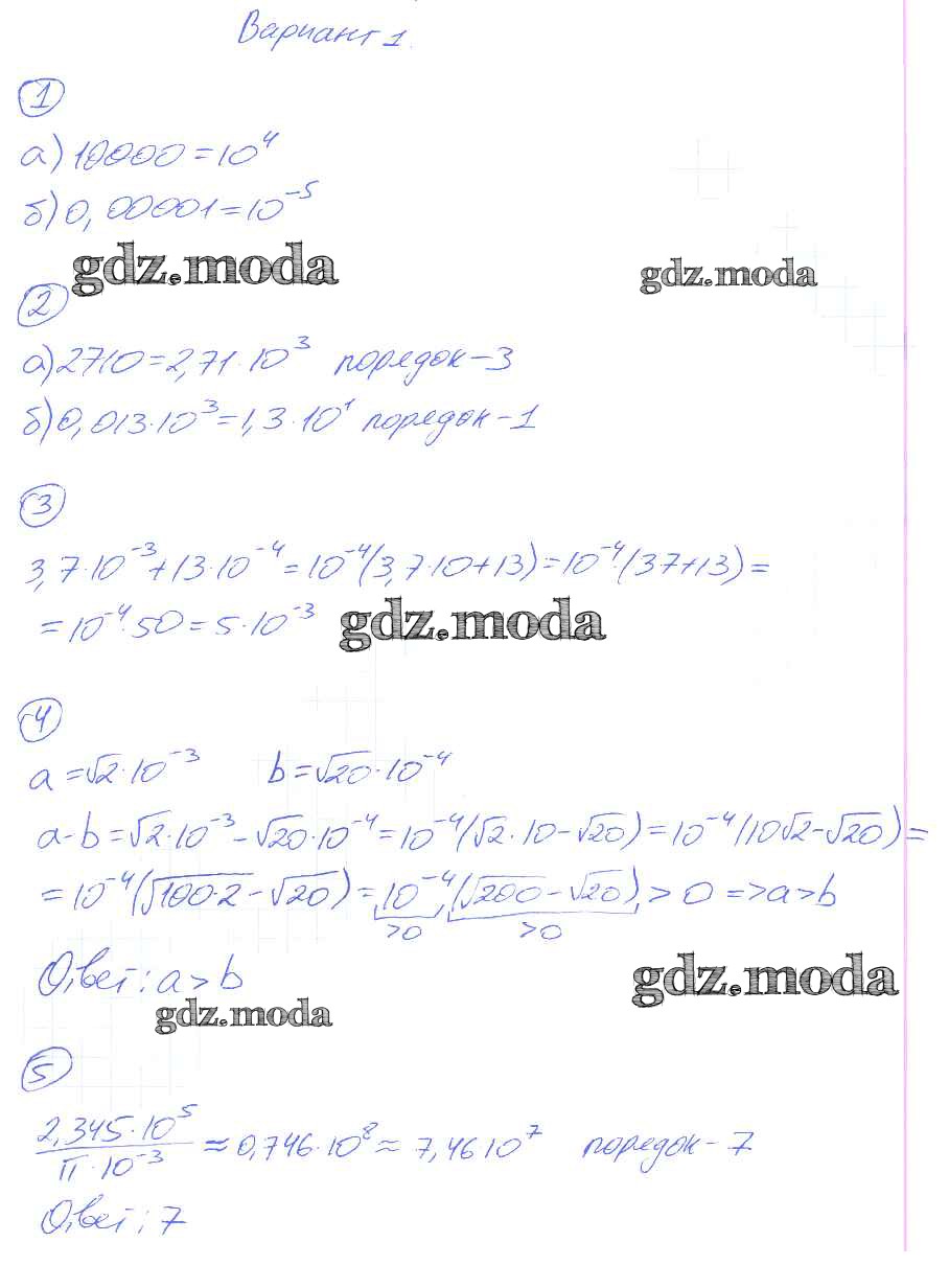 ОТВЕТ на задание № вариант-1 Дидактические материалы по Алгебре 8 класс Попов УМК
