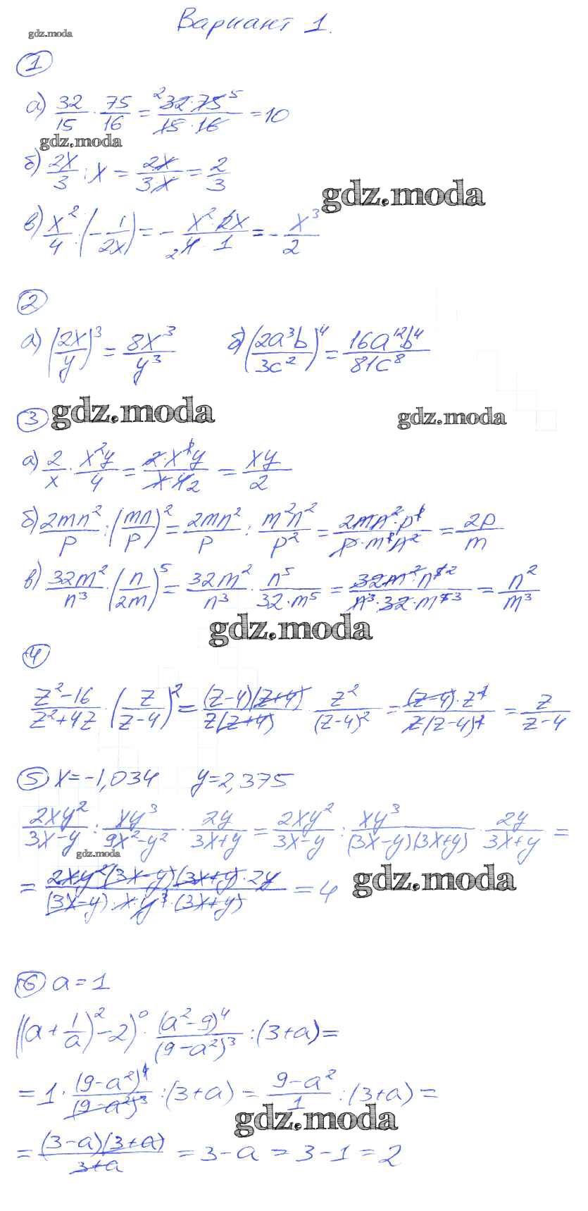 ГДЗ решение к заданию № вариант-1 Алгебра 8 класс Дидактические материалы Попов М.А. (к уч. Мордковича) Экзамен 2014 ФГОС бесплатно на гдз.мода!