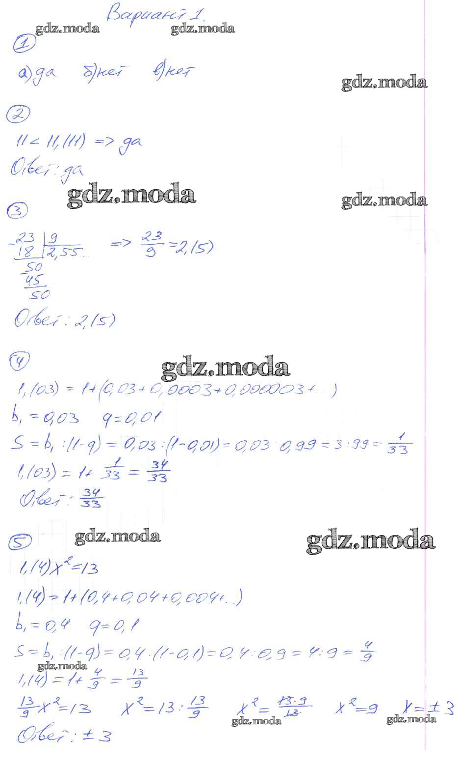 ОТВЕТ на задание № вариант-1 Дидактические материалы по Алгебре 8 класс Попов УМК