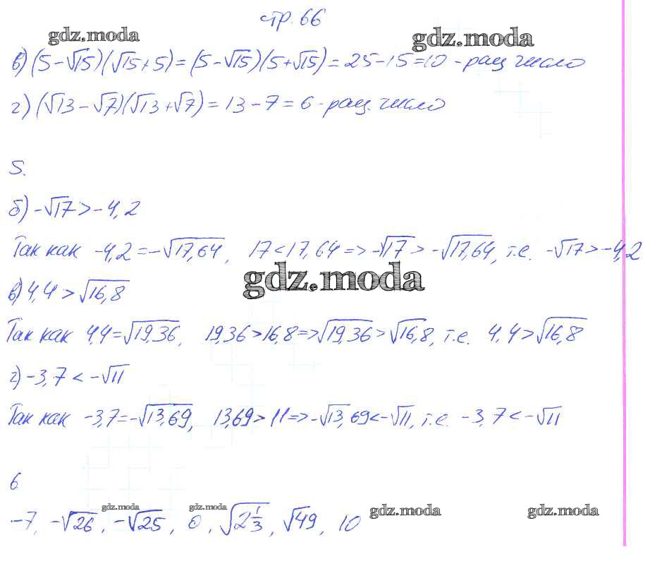 ОТВЕТ на задание № 66 Рабочая тетрадь по Алгебре 8 класс Ключникова УМК