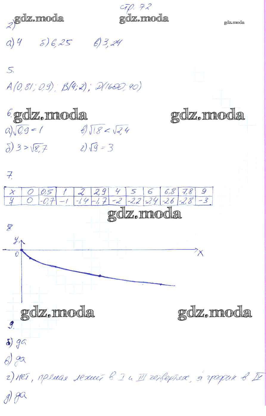ГДЗ решение к заданию № 72 Алгебра 8 класс рабочая тетрадь Ключникова Е.М. (к уч. Мордковича) Экзамен 2013 Часть 1 ФГОС бесплатно на гдз.мода!