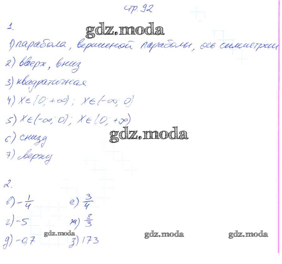ГДЗ решение к заданию № 92 Алгебра 8 класс рабочая тетрадь Ключникова Е.М. (к уч. Мордковича) Экзамен 2013 Часть 1 ФГОС бесплатно на гдз.мода!