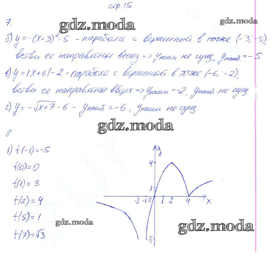 ОТВЕТ на задание № 15 Рабочая тетрадь по Алгебре 8 класс Ключникова УМК