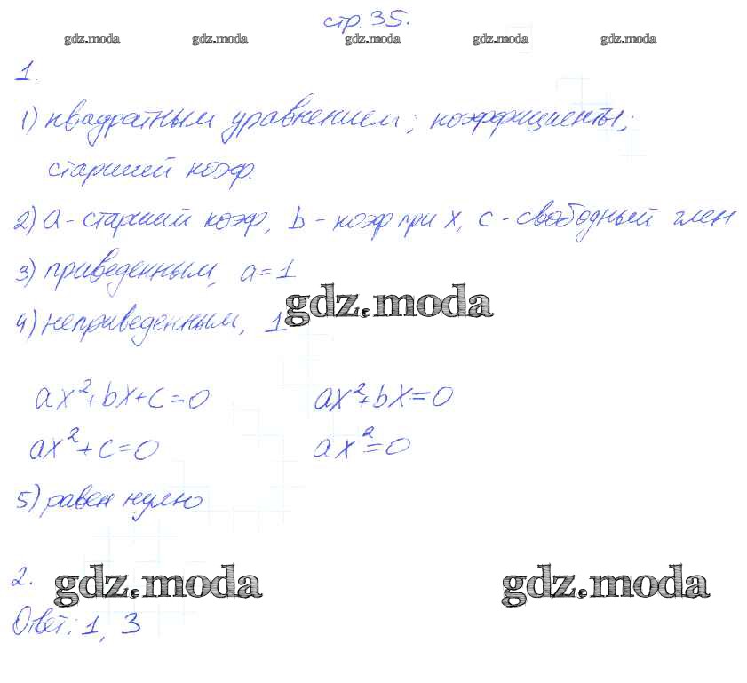 ГДЗ решение к заданию № 35 Алгебра 8 класс рабочая тетрадь Ключникова Е.М. (к уч. Мордковича) Экзамен 2013 Часть 1 ФГОС бесплатно на гдз.мода!