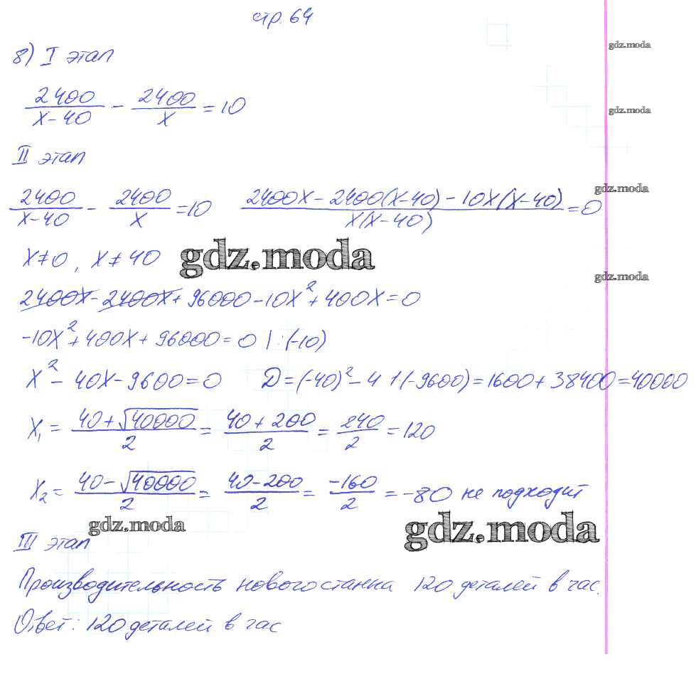 ОТВЕТ на задание № 64 Рабочая тетрадь по Алгебре 8 класс Ключникова УМК