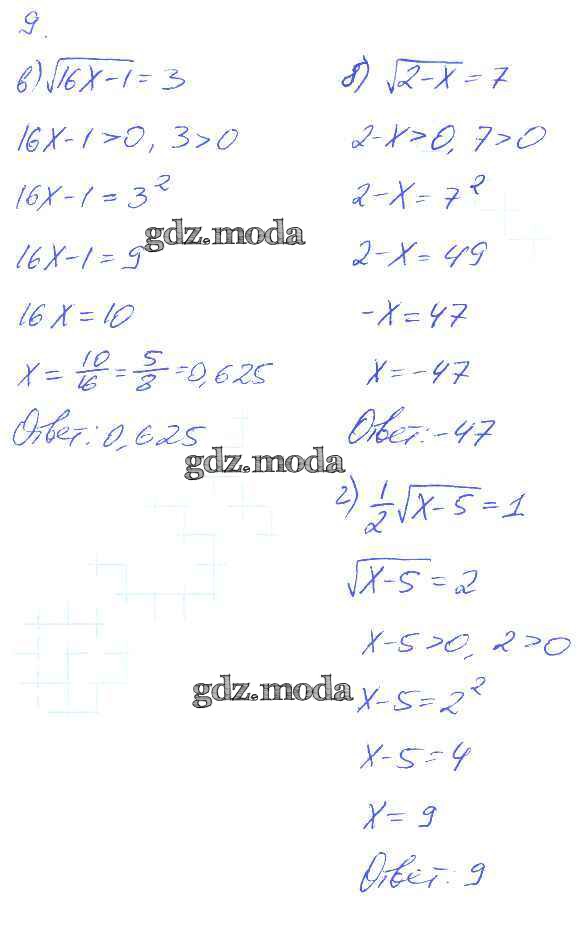 ГДЗ решение к заданию № 9 Алгебра 8 класс рабочая тетрадь Ключникова Е.М. (к уч. Мордковича) Экзамен 2013 Часть 1 ФГОС бесплатно на гдз.мода!