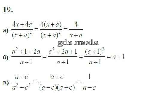 ГДЗ решение к заданию № 19 Алгебра 8 класс рабочая тетрадь Минаева С.С. Просвещение 2017 Часть 1, Часть 2 ФГОС бесплатно на гдз.мода!
