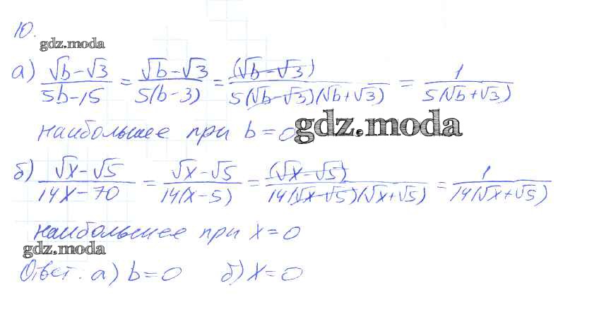 ГДЗ решение к заданию № 10 Алгебра 8 класс рабочая тетрадь Миндюк Н.Г. Просвещение 2016 Часть 1, Часть 2 ФГОС бесплатно на гдз.мода!