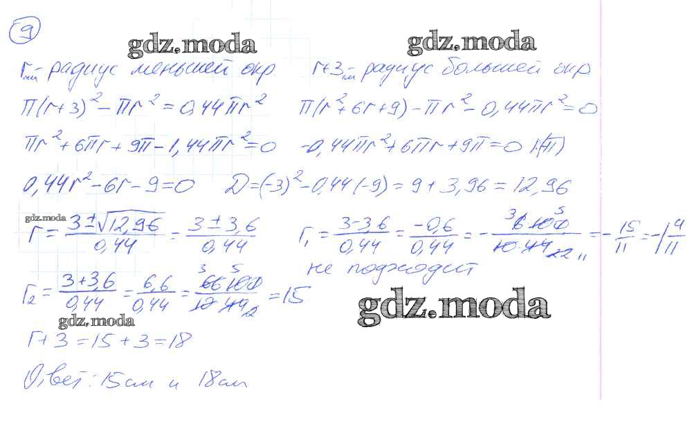 ОТВЕТ на задание № 9 Рабочая тетрадь по Алгебре 8 класс Миндюк УМК