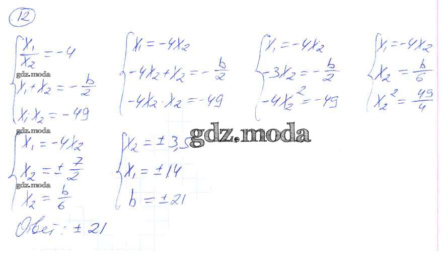 ОТВЕТ на задание № 12 Рабочая тетрадь по Алгебре 8 класс Миндюк УМК