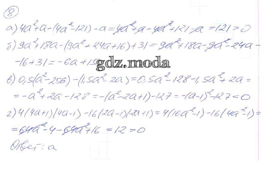 ГДЗ решение к заданию № 8 Алгебра 8 класс рабочая тетрадь Миндюк Н.Г. Просвещение 2016 Часть 1, Часть 2 ФГОС бесплатно на гдз.мода!