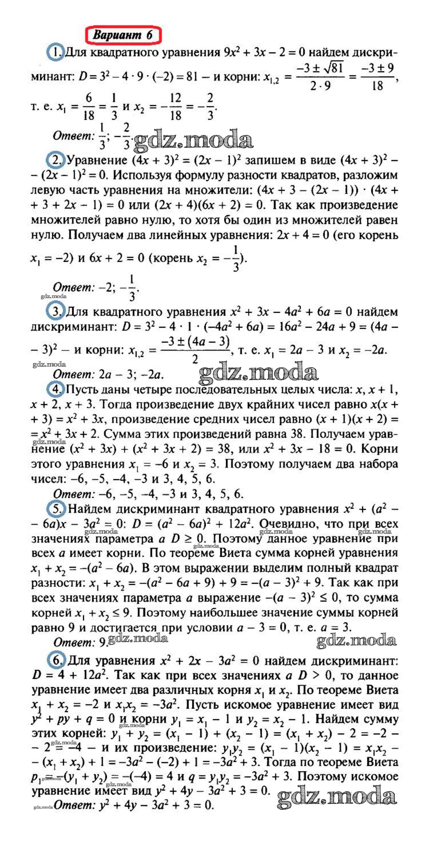 глава 3. квадратные уравнения (контрольные работы) / Квадратные уравнения (вариант) / 6