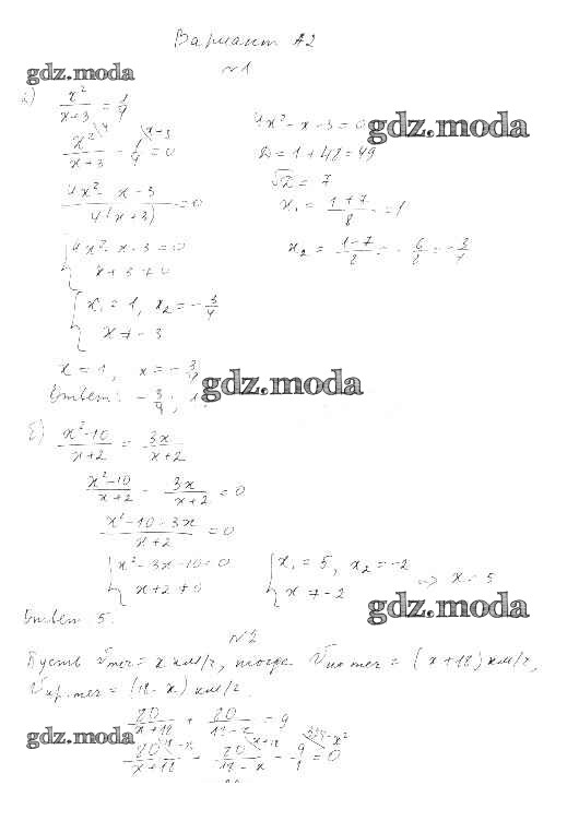 ОТВЕТ на задание № 2 Самостоятельные и контрольные работы по Алгебре 8 класс Ершова
