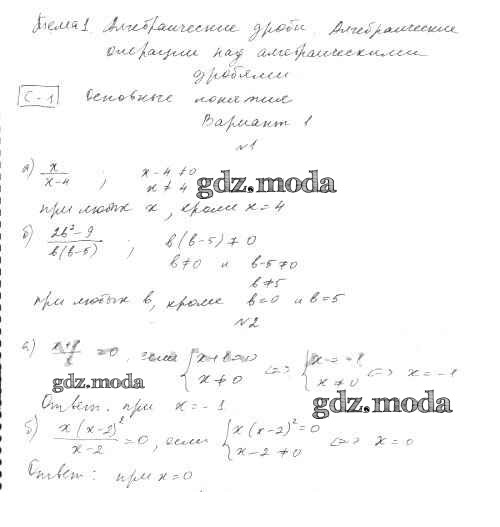 ГДЗ решение к заданию № 1 Алгебра 8 класс самостоятельные работы Александрова Л.А. Мнемозина 2016 ФГОС бесплатно на гдз.мода!