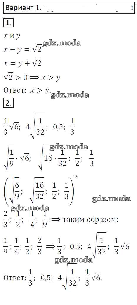 ОТВЕТ на задание № 1 Самостоятельные работы по Алгебре 8 класс Александрова
