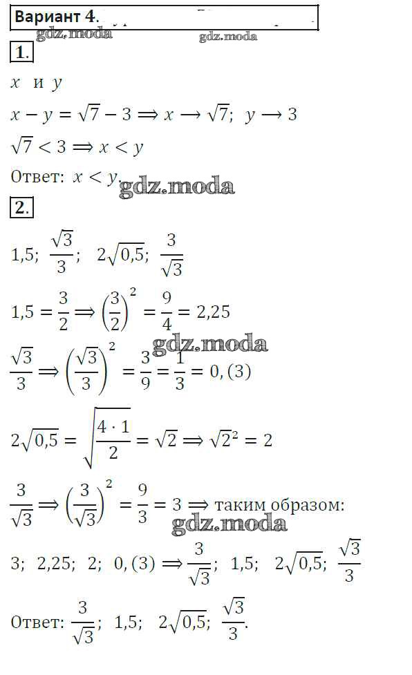 ОТВЕТ на задание № 4 Самостоятельные работы по Алгебре 8 класс Александрова