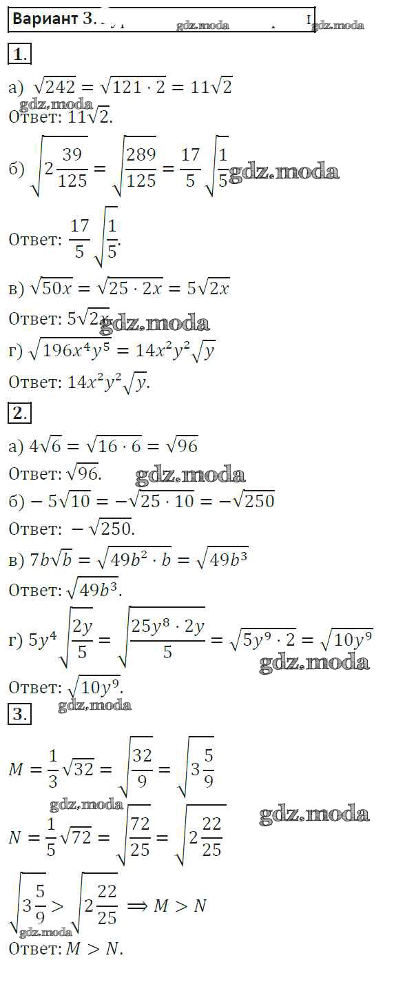 ГДЗ решение к заданию № 3 Алгебра 8 класс самостоятельные работы Александрова Л.А. Мнемозина 2016 ФГОС бесплатно на гдз.мода!