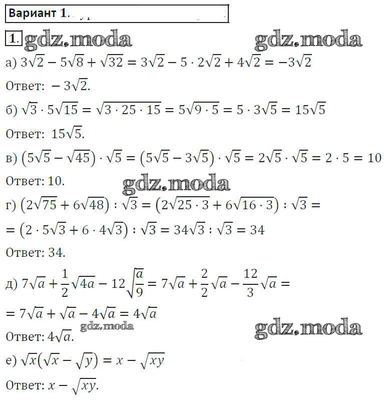 ГДЗ решение к заданию № 1 Алгебра 8 класс самостоятельные работы Александрова Л.А. Мнемозина 2016 ФГОС бесплатно на гдз.мода!