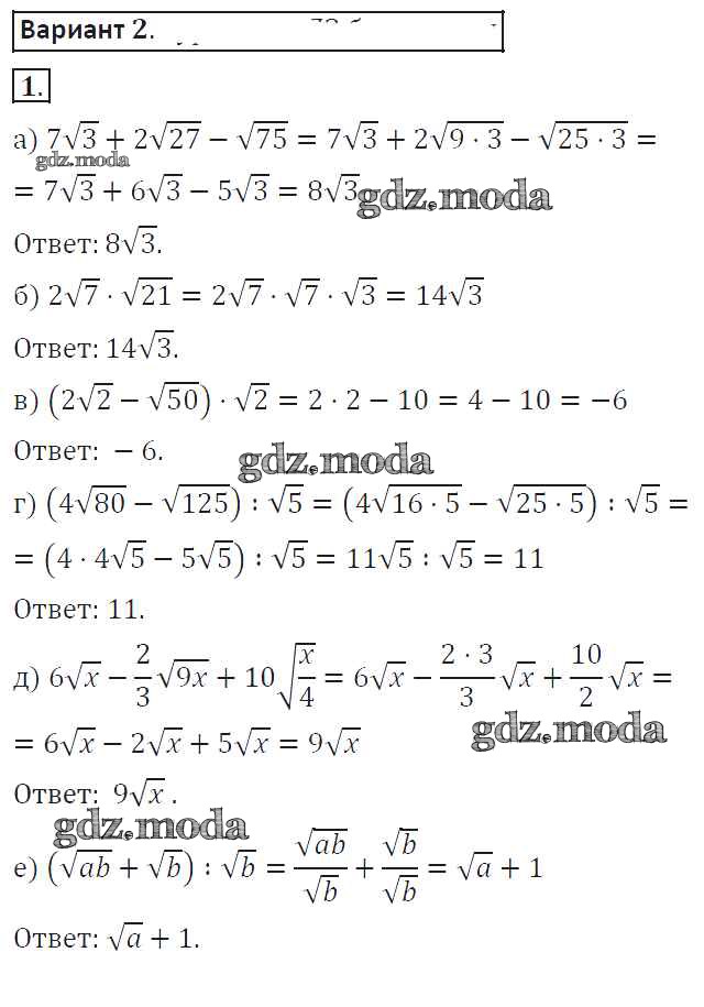 ГДЗ решение к заданию № 2 Алгебра 8 класс самостоятельные работы Александрова Л.А. Мнемозина 2016 ФГОС бесплатно на гдз.мода!