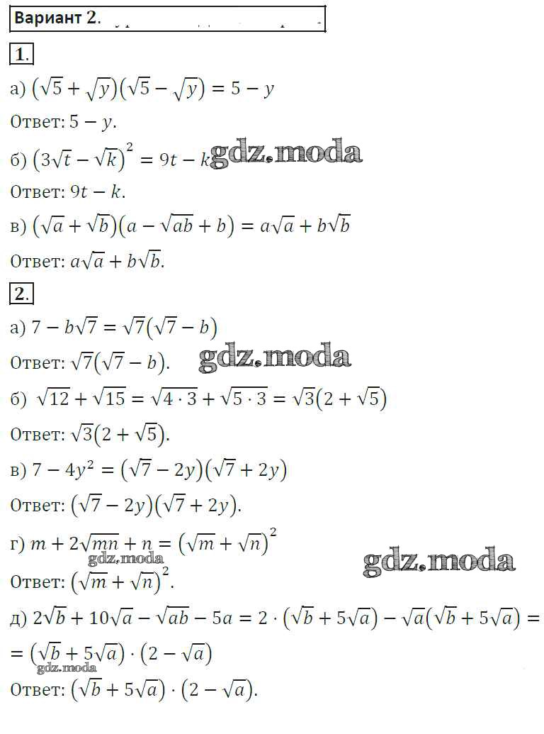 ГДЗ решение к заданию № 2 Алгебра 8 класс самостоятельные работы Александрова Л.А. Мнемозина 2016 ФГОС бесплатно на гдз.мода!