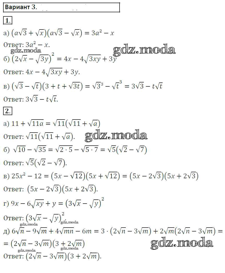 ГДЗ решение к заданию № 3 Алгебра 8 класс самостоятельные работы Александрова Л.А. Мнемозина 2016 ФГОС бесплатно на гдз.мода!