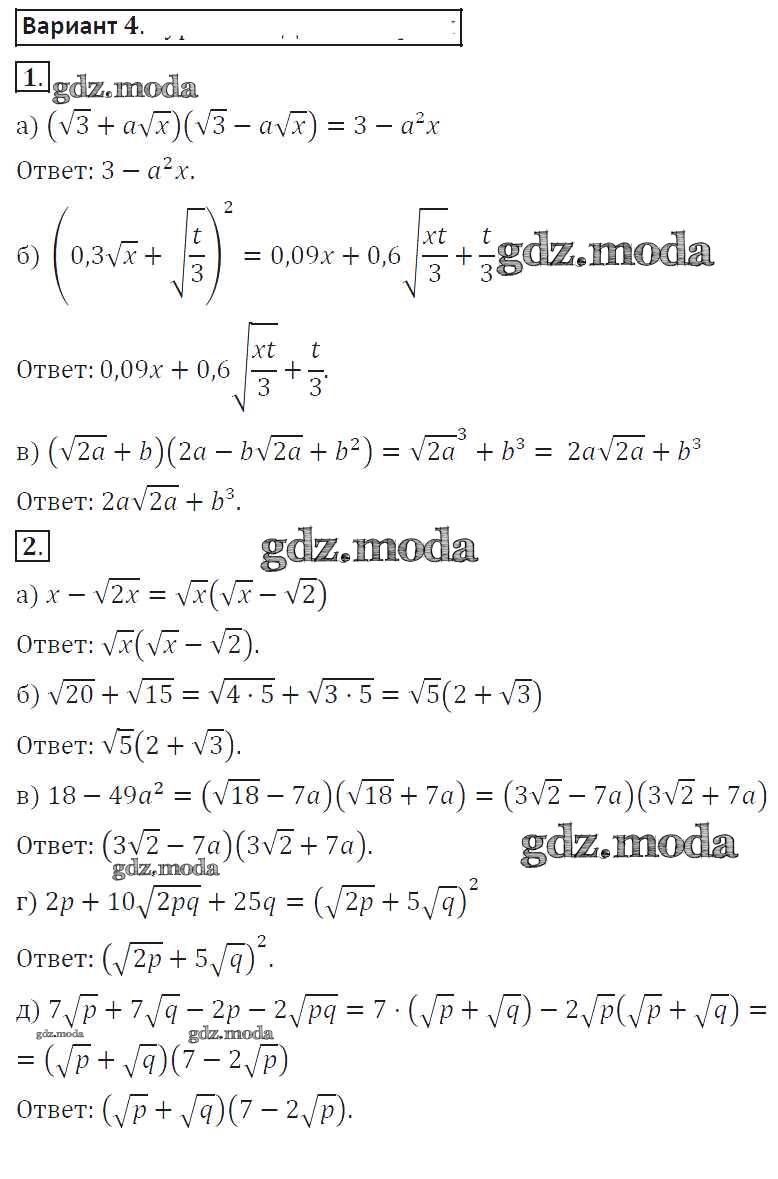 ГДЗ решение к заданию № 4 Алгебра 8 класс самостоятельные работы Александрова Л.А. Мнемозина 2016 ФГОС бесплатно на гдз.мода!