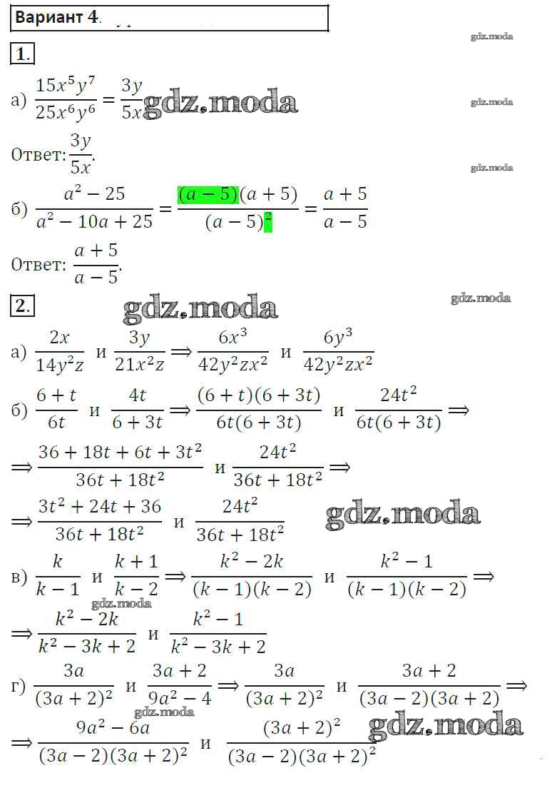 ГДЗ решение к заданию № 4 Алгебра 8 класс самостоятельные работы Александрова Л.А. Мнемозина 2016 ФГОС бесплатно на гдз.мода!