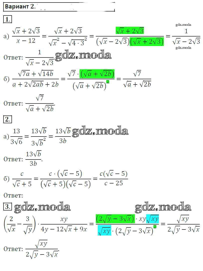 ГДЗ решение к заданию № 2 Алгебра 8 класс самостоятельные работы Александрова Л.А. Мнемозина 2016 ФГОС бесплатно на гдз.мода!