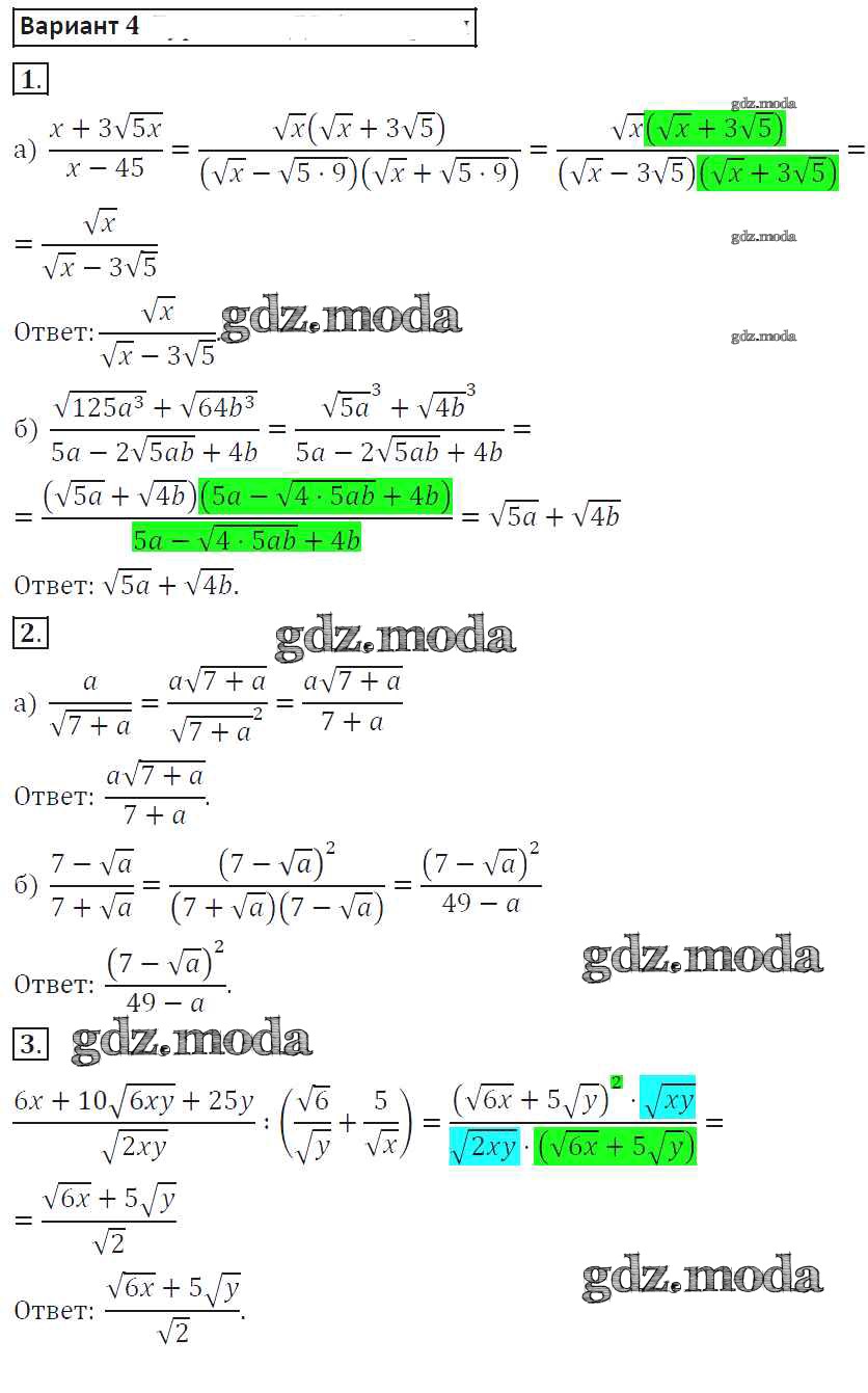 ГДЗ решение к заданию № 4 Алгебра 8 класс самостоятельные работы Александрова Л.А. Мнемозина 2016 ФГОС бесплатно на гдз.мода!