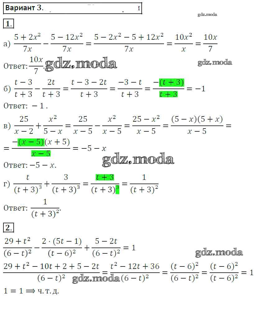 ГДЗ решение к заданию № 3 Алгебра 8 класс самостоятельные работы Александрова Л.А. Мнемозина 2016 ФГОС бесплатно на гдз.мода!