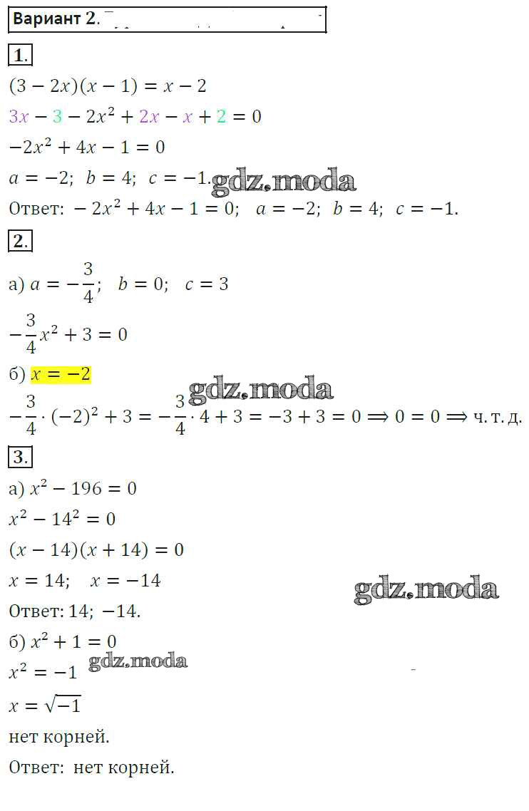 ГДЗ решение к заданию № 2 Алгебра 8 класс самостоятельные работы Александрова Л.А. Мнемозина 2016 ФГОС бесплатно на гдз.мода!